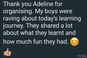Thank you to all our young friends for being so participative and a joy to be with. Thanks to all the parent volunteers for assisting, to Adeline for organising and to all parents for supporting the programme. God bless you all.