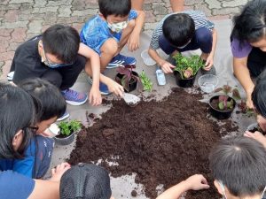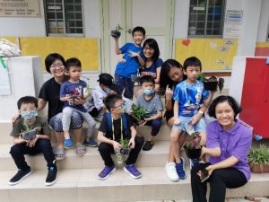 We had upcycled discarded plastic containers and milk cartons for use as planters and spades. The children were free to choose the type of cutting, planter and even how to arrange the plants. We were on hand to guide them in the process, but the children were the ones who decided what they wanted.