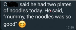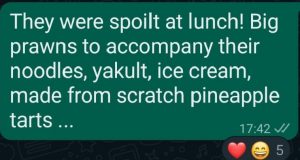 Lunch was a hearty homecooked meal of vegetarian fried bee hoon (rice vermicelli), vegetable fritters, spring rolls and prawns. And to top off their Children’s Day celebrations – Ice Cream and Yakult.