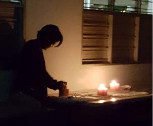 At 7.30pm staff turned off the air-conditioner in the office, the photocopier and non-essential lights in the premises. All mobile phones were kept in the office. Residents gathered in the dining room, chatting excitedly in anticipation of how Earth Hour was to be observed. At 8.30pm the dining room was plunged into darkness when the lights were switched off together with the fans. Two candles were lighted to provide rudimentary illumination.