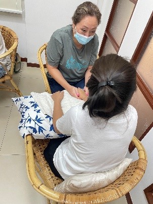 Programme Participants getting personal hand massage from volunteers to learn about compression.