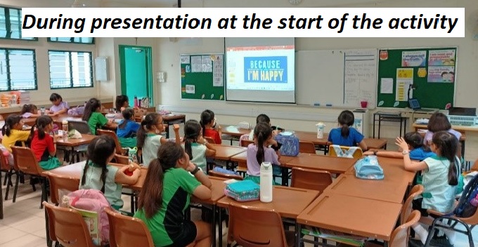The lower primary students: Primary 1 and Primary 2, did Body-Scanning Exercise and Five Senses Walk to appreciate and find a collective joy together as a class.