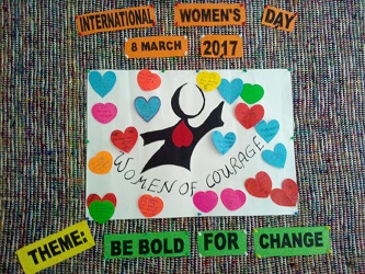 The theme of IWD 2017 is “Be Bold for Change”. The event started with the women taking turns to light the candles symbolizing the sharing of lights and in solidarity to all women in the world. It was followed by silent prayer and listening to a song “Come As You Are.”