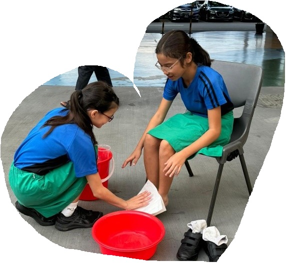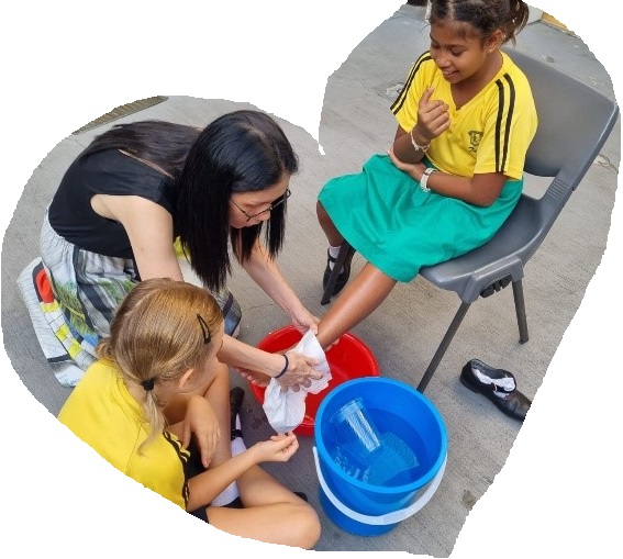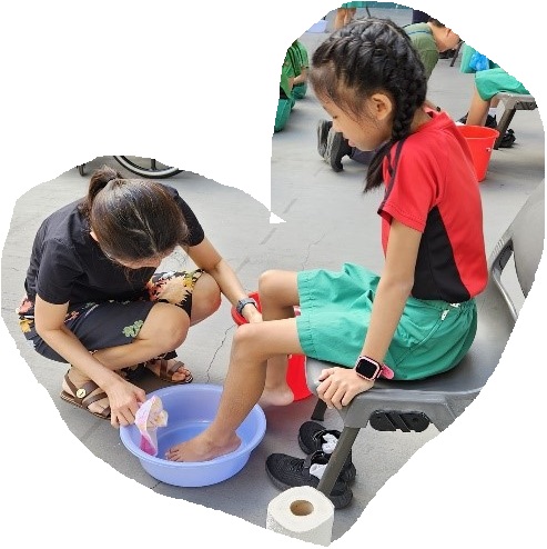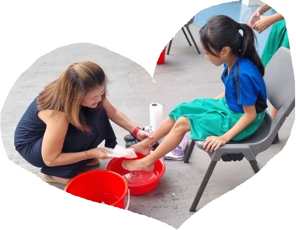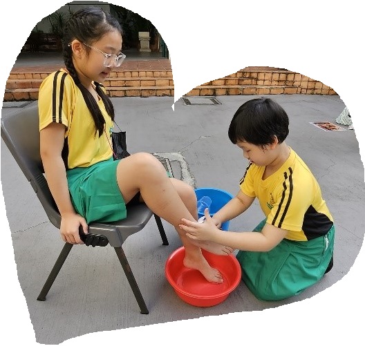 Students taking Catholic Values Education, staff and volunteer catechists participated in the washing of feet event, enacting Jesus’ humility that happened on the very first Maundy Thursday evening, when Jesus instituted the Eucharist (the very first Mass) and humbled himself as a servant, knelt down to wash the feet of his disciples, including the one who was to betray him.
