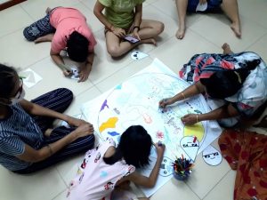 At the end of the activity, residents were all excited to put up their masterpiece on the wall in the living room. It was an educational and fruitful session for both the adults and children as they gained new knowledge about the importance of protecting the environment and realized that the health of the environment is closely related to the health of humans. They were also amazed by many intriguing facts that they did not know before. Lastly, this activity also allowed for the residents from the different countries to recount and draw about their environment back at home and provide some comfort to them while they are far away from home.