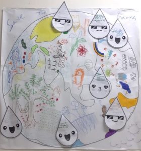 The women and children also collaboratively created an artwork with an outline of Earth. They had free rein to decorate the Earth with their own drawings and write on their reflections about protecting the environment.